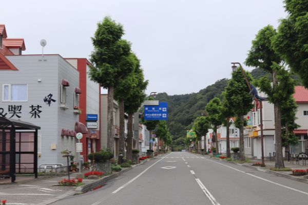 穂別市街東1条線、通称コキア通り紅葉を始めます。