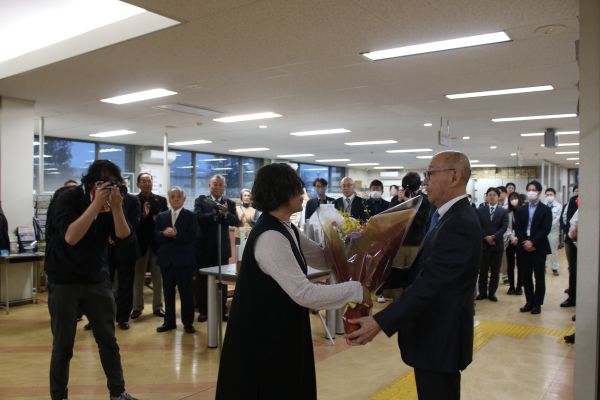 とむかわ本庁で行われ、3期12年の町長業務に別れをつげました。