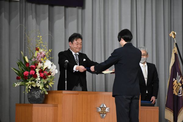 表彰状を受ける、櫻庭彪海(さくらば・たけみ)教諭。
