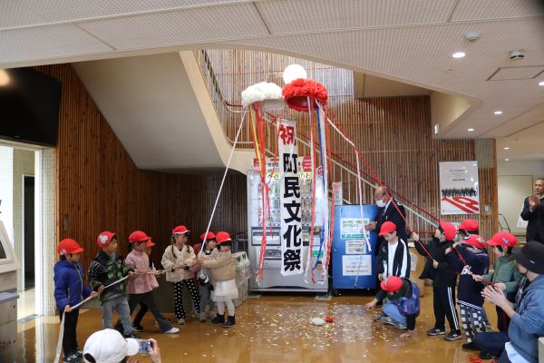 毎年恒例の、さくらこども園児によるくす玉割でオープン。