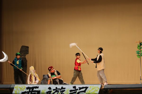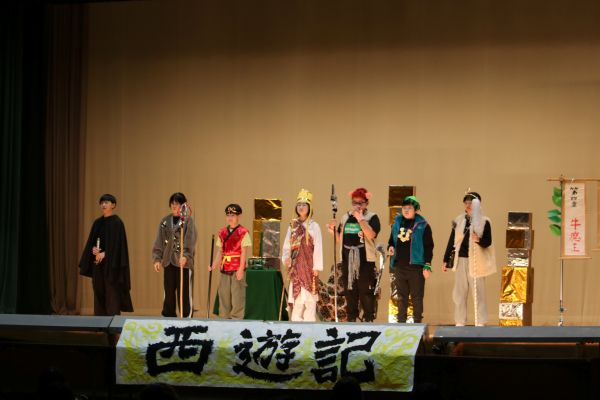 写真上2枚は6年生の劇「西遊記」の場面より。