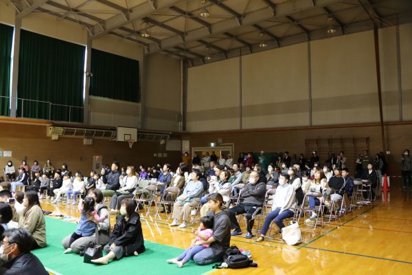 ステージショーを楽しむ保護者の皆さん。