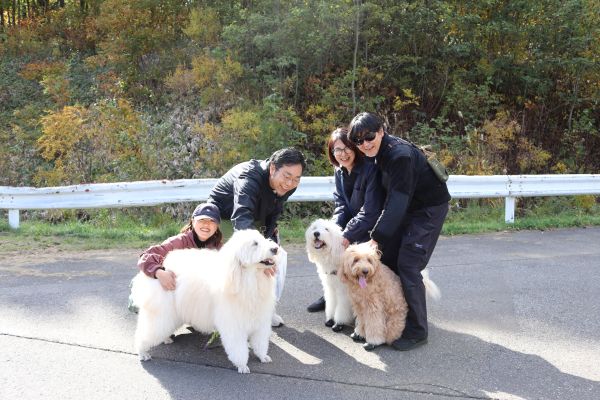 ランの前に記念写真。左前犬は530番でエントリーしています。