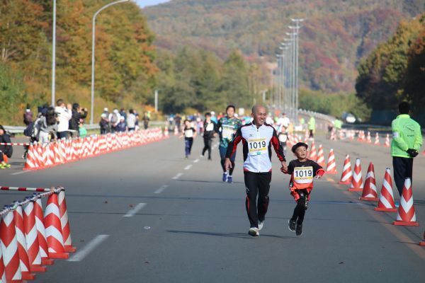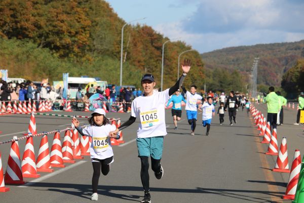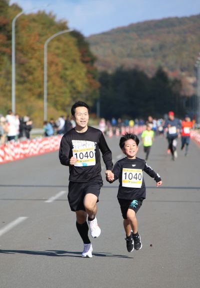 有森裕子さんに励まされゴールを目指す3km親子ペア。