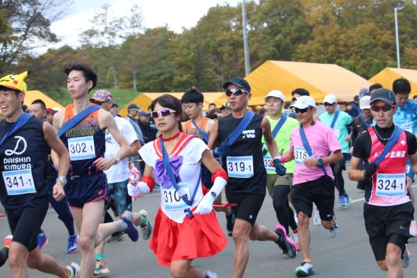 10月19日、吹く風は冷たいものの絶好のマラソン日和、第17回・鵡川ししゃもファ