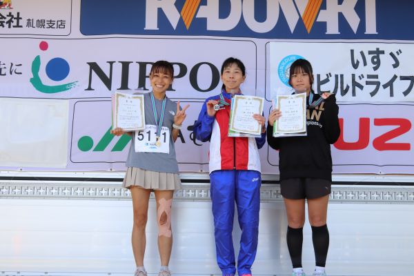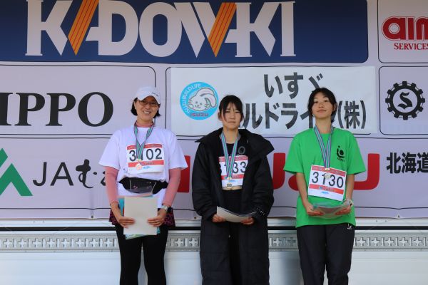 5kmマラソン中学生以上女子の1位から3位までの入賞者。