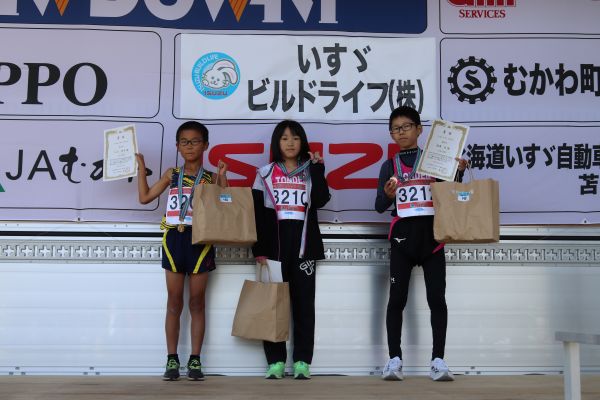 3kmマラソン小学3・4年生男女の1位から3位までの入賞者。