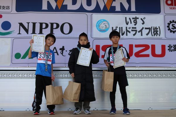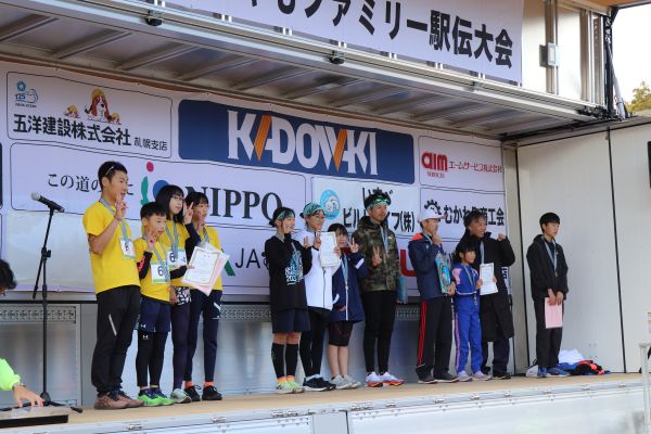 小学生駅伝の部の1位から3位までの入賞者。
