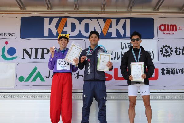 5kmマラソン中学生以上男子の1位から3位までの入賞者。