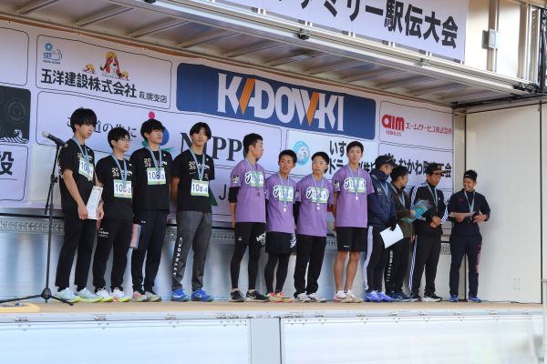 駅伝の部の1位から3位までの入賞者。